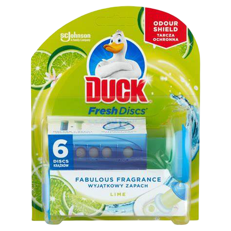 Duck WC Disk Fresh Lime 36g donosi citrusnu svežinu uz efikasno čišćenje i dezodoraciju WC šolje. Ne ostavlja tragove i štiti od kamenca. 🍋 Miris limete 🧽 Održava higijenu 🧴 Jednostavan za upotrebu Uputstvo za upotrebu: Prisloniti aplikator ispod ivice WC šolje i utisnuti gel disk. Ne ispirati ručno.