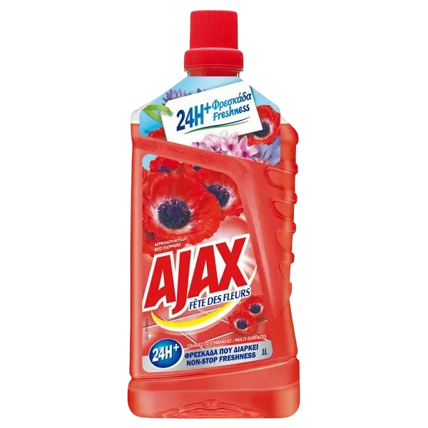 Ajax Floral Fiesta Red Flowers u bočici od 1L je univerzalno sredstvo za čišćenje sa osvežavajućim mirisom crvenog cveća. Efikasno uklanja nečistoće sa svih površina, ostavljajući prostor mirisnim i čistim. 🌸🧴