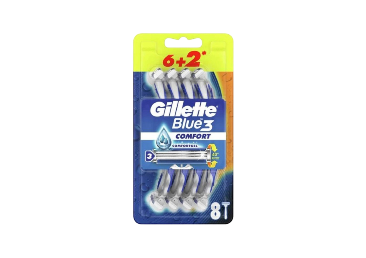 Gillette Blue 3 Comfort 6+2 donosi dodatnu udobnost zahvaljujući traci sa vitaminom E i glatkoj pokretnoj glavi koja prati linije lica. 🪒 3 oštrice sa rotirajućom glavom 🩹 Komfort zona protiv iritacije 📦 Idealno za putovanja i svakodnevnu upotrebu Uputstvo za upotrebu: Koristiti uz gel ili penu za brijanje. Ispirati nakon svake upotrebe.
