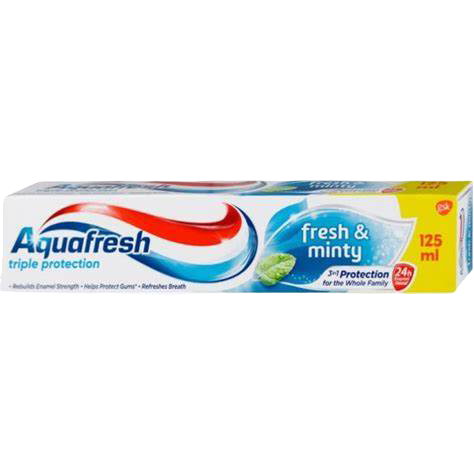 Aquafresh Fresh Mint pasta za zube donosi trostruku zaštitu zuba, desni i daha. Sa osvežavajućim ukusom mente i blagom formulom, idealna je za svakodnevnu higijenu usne duplje i dugotrajan osećaj čistoće. 🌿🪥