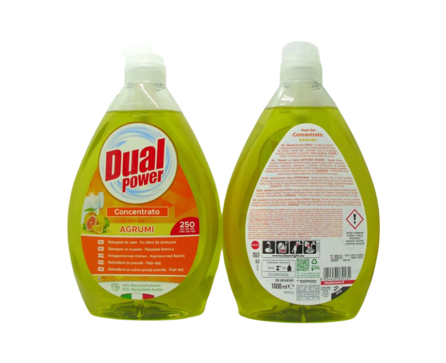 Dual Agrumi 1L je osvežavajući tečni sapun sa citrusnim ekstraktima koji temeljno čisti i osvežava kožu ruku. Pogodan za čestu upotrebu bez isušivanja. 🍊 Citrusna svežina 🧴 Nežna formula za svakodnevnu upotrebu 🧼 Ostavlja ruke mirisnim i čistim Uputstvo za upotrebu: Naneti na vlažne ruke, zapeniti, temeljno utrljati i isprati vodom. Pogodno za celu porodicu.