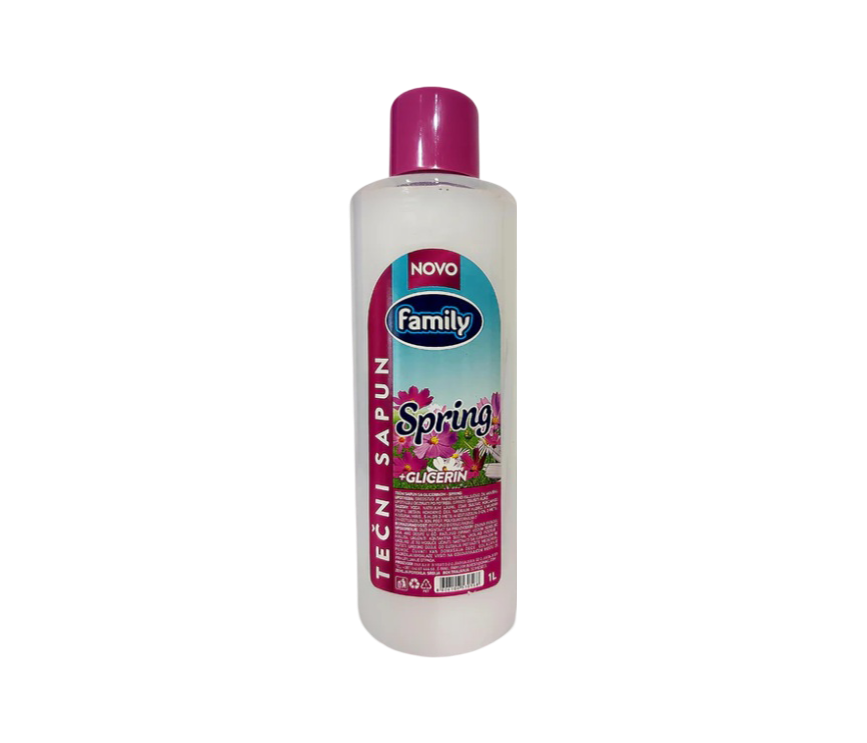 Family Spring tečni sapun 1L osvežava kožu blagim prolećnim mirisom i nežno je čisti bez isušivanja. Pogodan za svakodnevnu upotrebu cele porodice. 🌸 Prolećna svežina 🧴 Blaga i efikasna formula 👐 Veliko porodično pakovanje Uputstvo za upotrebu: Nanesite na mokre ruke, utrljajte dok ne zapeni i isperite toplom vodom.