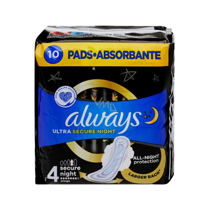 Always Ultra Secure Night 10kom pružaju maksimalnu zaštitu tokom noći. Sa posebnom tehnologijom koja upija tečnost, ovi ulošci pružaju sigurnost i udobnost tokom celog noćnog sna. 🌙💧