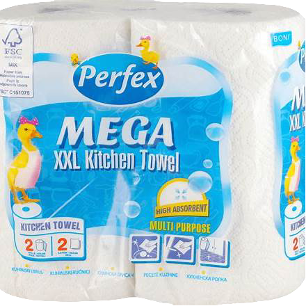 Perfex kuhinjski ubrus Mega u pakovanju 2/1 sa 2 sloja pruža visoku upijajuću moć i izdržljivost. Idealan za brisanje površina, ruku i kuhinjskih mrlja. 🧻🍽️